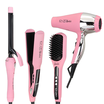 Bộ dụng cụ tạo kiểu tóc chuyên nghiệp ENZO 4 trong 1 màu hồng thời trang, gồm máy sấy tóc, máy duỗi tóc, bàn chải tạo kiểu, máy uốn tóc, bộ quà tặng cưới